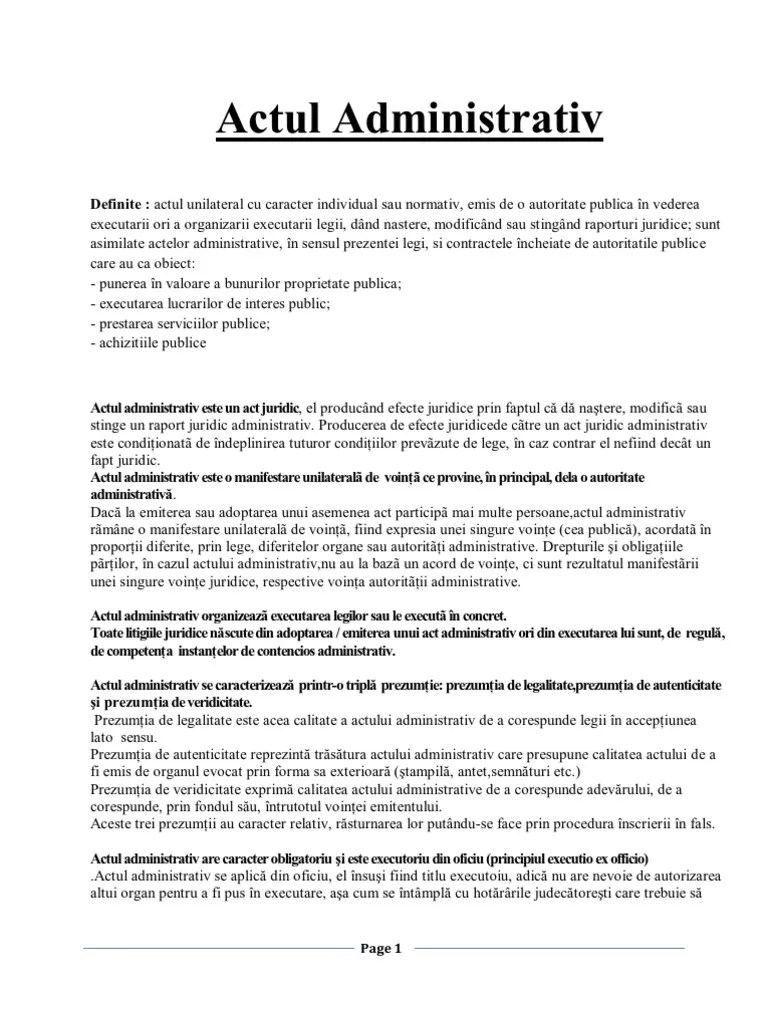 Aici Drept Administartiv Gh I Institutia Actului Administrativ Teoria Generala A Actului Studocu