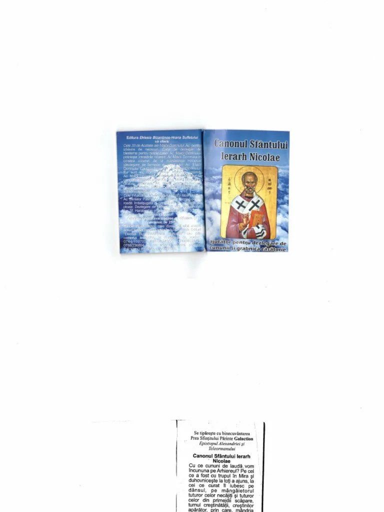 Jul 29, 2013 · acatistier, colecție de acatiste în format pdf descarcă acatistiereul în format pdf din cuprins:.. Nov 29, 2016 · mana dreapta a sf nicolae se gaseste acum la biserica sf. Sfinte, cerceteaza si vindeca neputintele noastre, pentru numele tau. Gheorghe nou din bucuresti, spre marea bucurie a slujitorilor de aici si a credinciosilor care frecventeaza acest sfânt lacas. Rugăciunile pe care le spunem sunt mereu ascultate, însă atunci când ne rugăm pentru un anumit lucru ar fi bine să știm că există sfinți protectori. Am auzit ca acatistul sf.ioachim si ana, iar in urma cu cativa ani am auzit de la un preot ca acatistul sf.nicolae. Ascultă acatistul sfântului ierarh nicolae aici. Daca vrei o casatorie buna, in care juramintele ….. Rugăciunile pe care le spunem sunt mereu ascultate, însă atunci când ne rugăm pentru un anumit lucru ar fi bine să știm că există sfinți protectori.